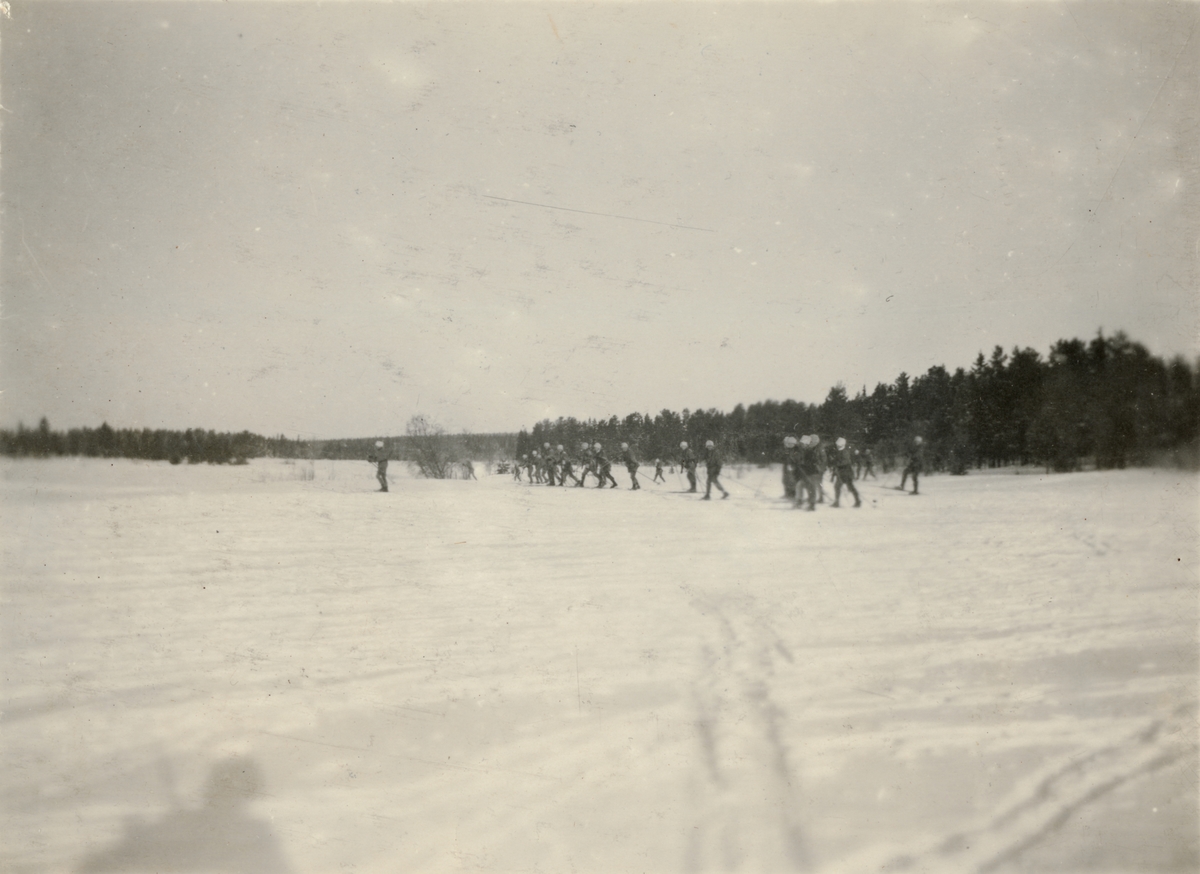 Titel: Text i fotoalbum: "Vinterövningarna vid Umeå 1916. Framryckning i skyttelinje."