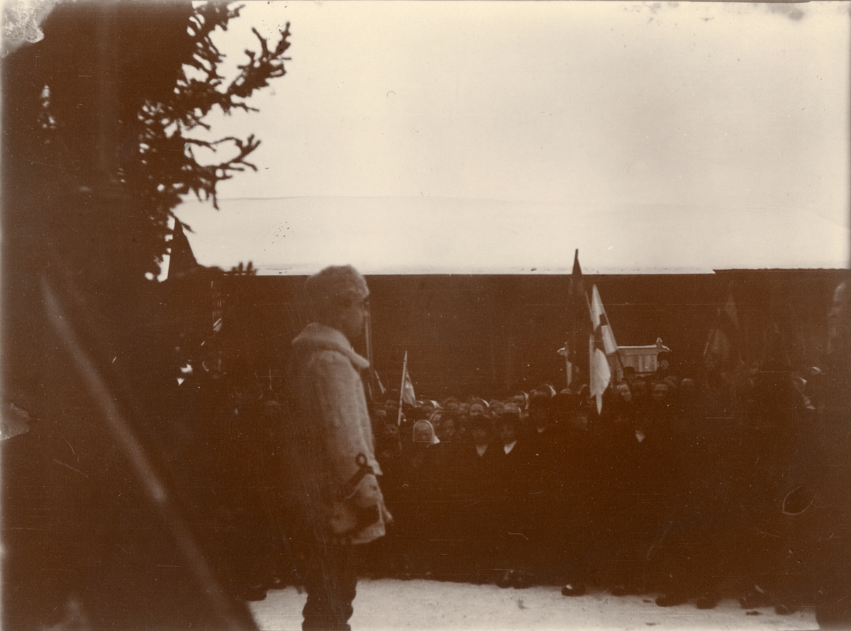 Titel: Smålands husarregemente K 4 på vinterövning i Norrbotten omkring 1910.