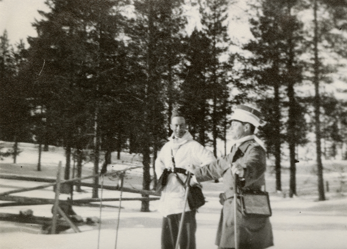 Titel: Text i fotoalbum: "Vinterbefälsövningar i Idre febr 1938. Bengt Ljungqvist och chefen (P*=Palmstierna)".