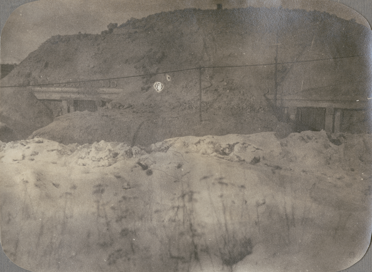 Text i fotoalbum: "Januari 1917. (då vi hade att uthärda svåra ryska anfall, Winterschlacht am der Aa). Olai ställningen. Bombsäkert skyddsrum med periskop. De måste alla ha minst 2 utgångar "