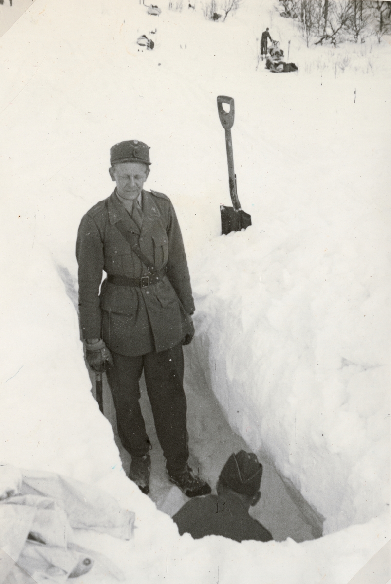Titel: Text i fotoalbum: "Ing 3 vinterövning i Björkliden mars 1949. Anders Jonsson pustar".