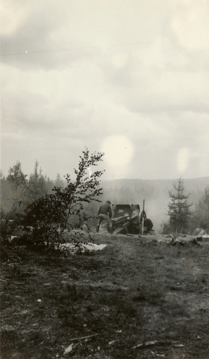 Text i fotoalbum: "Krigsskolan 10 okt 1926 - 31 dec 1927. Skillingaryd - Varberg, sommaren 1927. 7 cm batt i eldgivning".