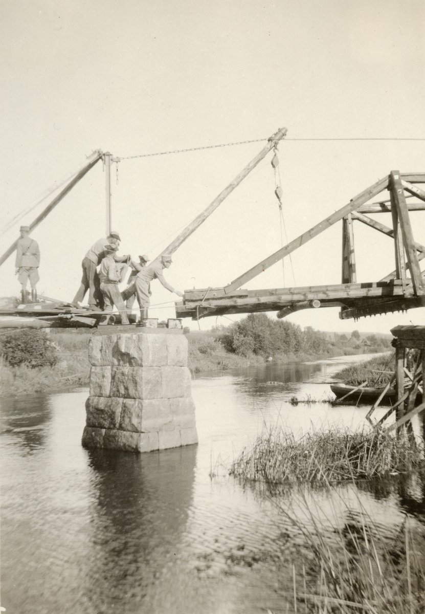 Titel: Text i fotoalbum: "Brobygget vid Gripenberg. Nya spannet vindas ut på sin plats."