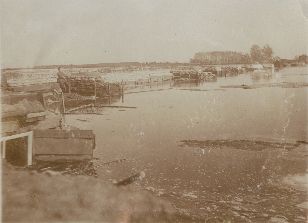 Titel: Text i fotoalbum: "Öfversvämningen af Olaiställningen mars 1916."