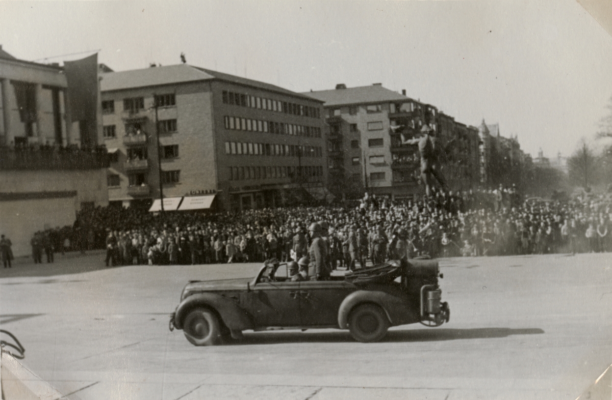 Titel: Text i fotoalbum: "Stora Militärparaden genom Göteborg 19/4 1942".
