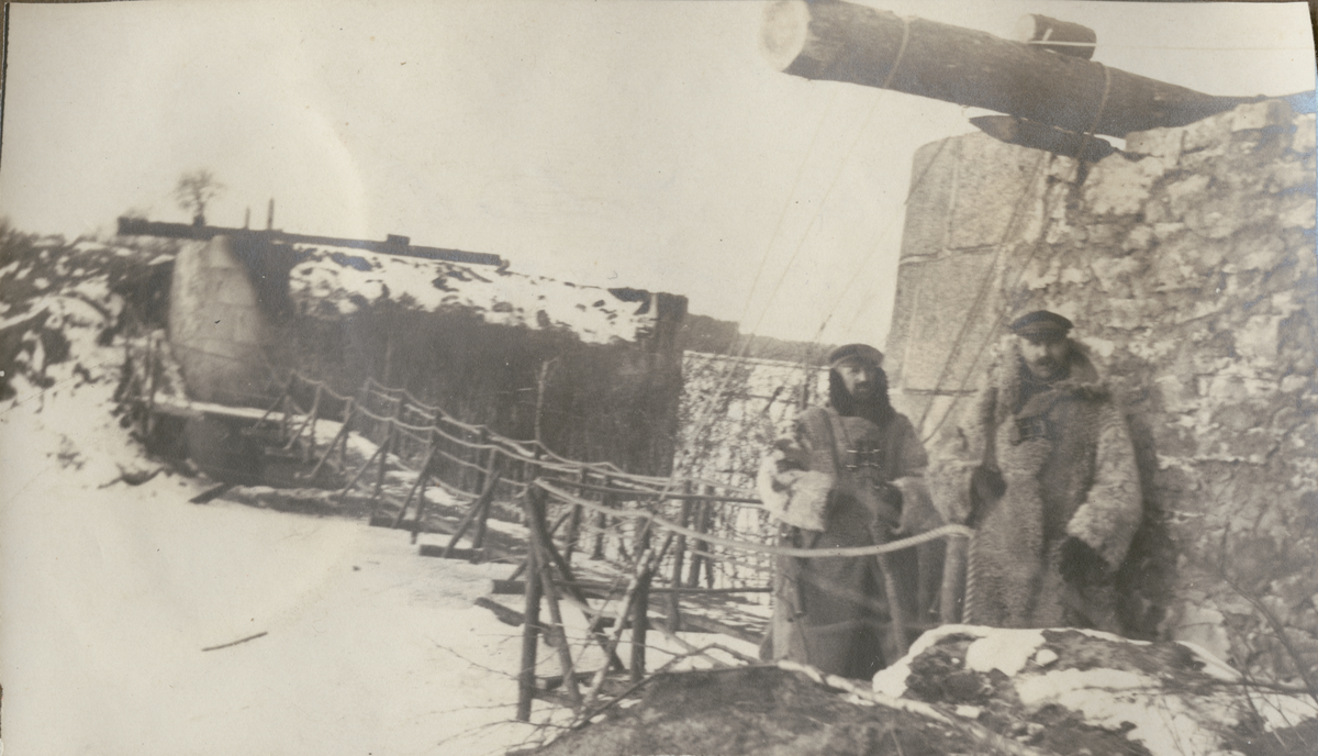 Text i fotoalbum: "Olai ställningen mars 1916. Major Folck, oberlt. Ledou, feldarzt Swartz".