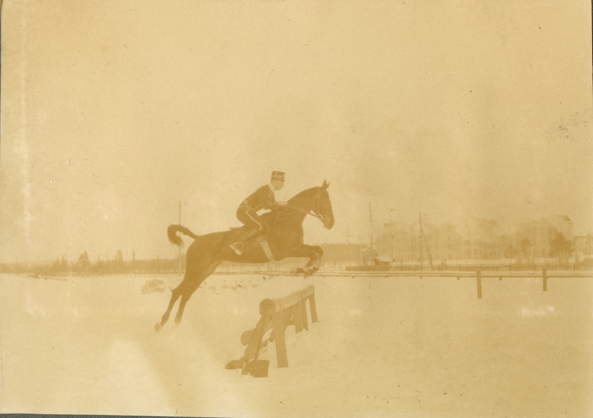 Titel: Text i fotoalbum: "Underofficersskolan 1911-1912 Umeå-Eksjö". Ridövning.
