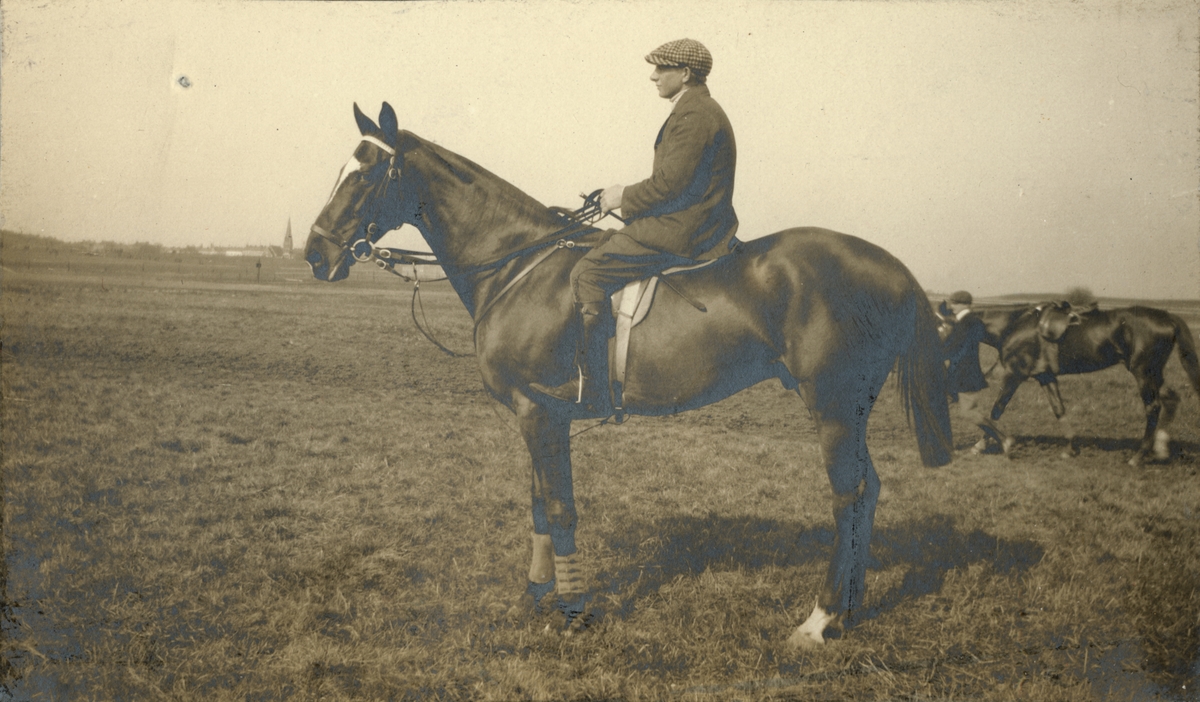 Titel: Text i fotoalbum: "Ränneslätt K 4 Kav. aspirantskola 1900". Man till häst.