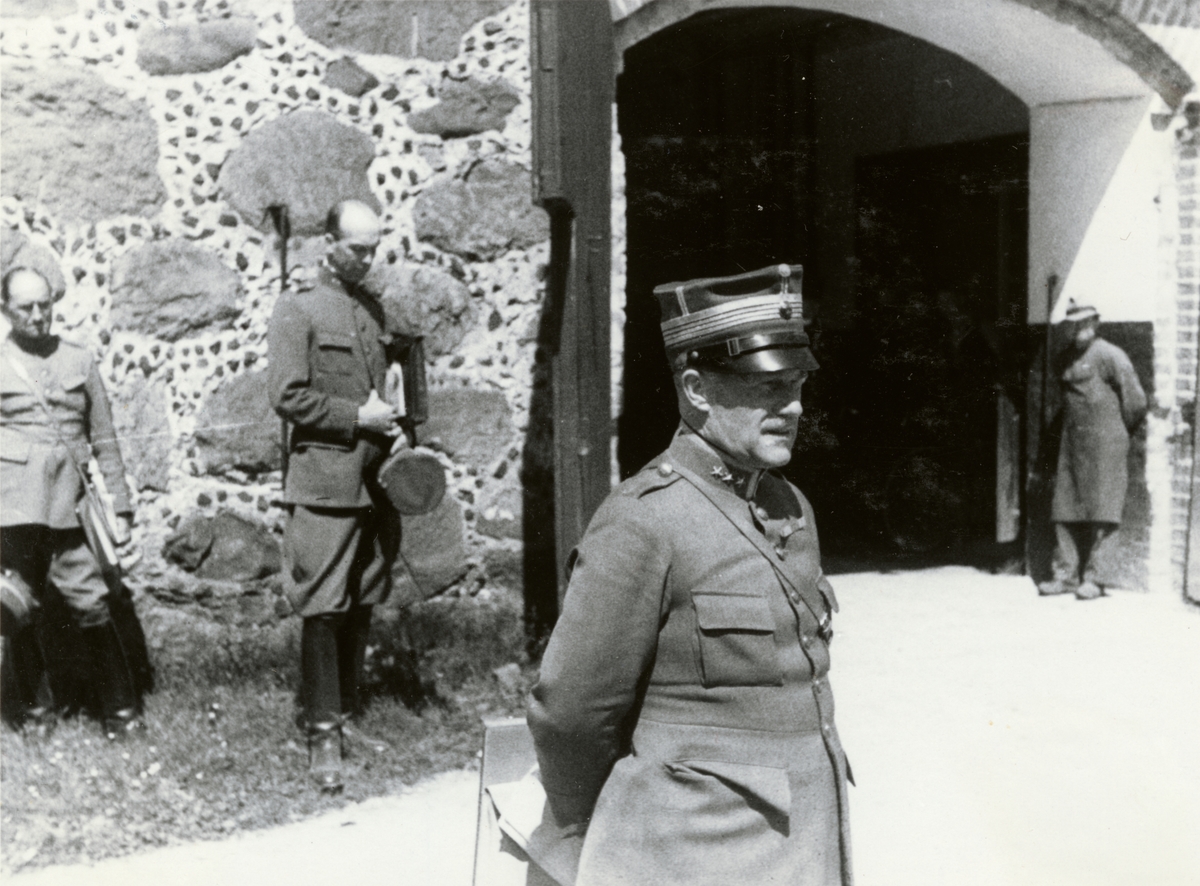 Text i fotoalbum: "1936 juni. Intendentur-fältövningen i Röstånga. Trolleholm. Ledningen: Perfect, Norbern gst, överste Arntz".