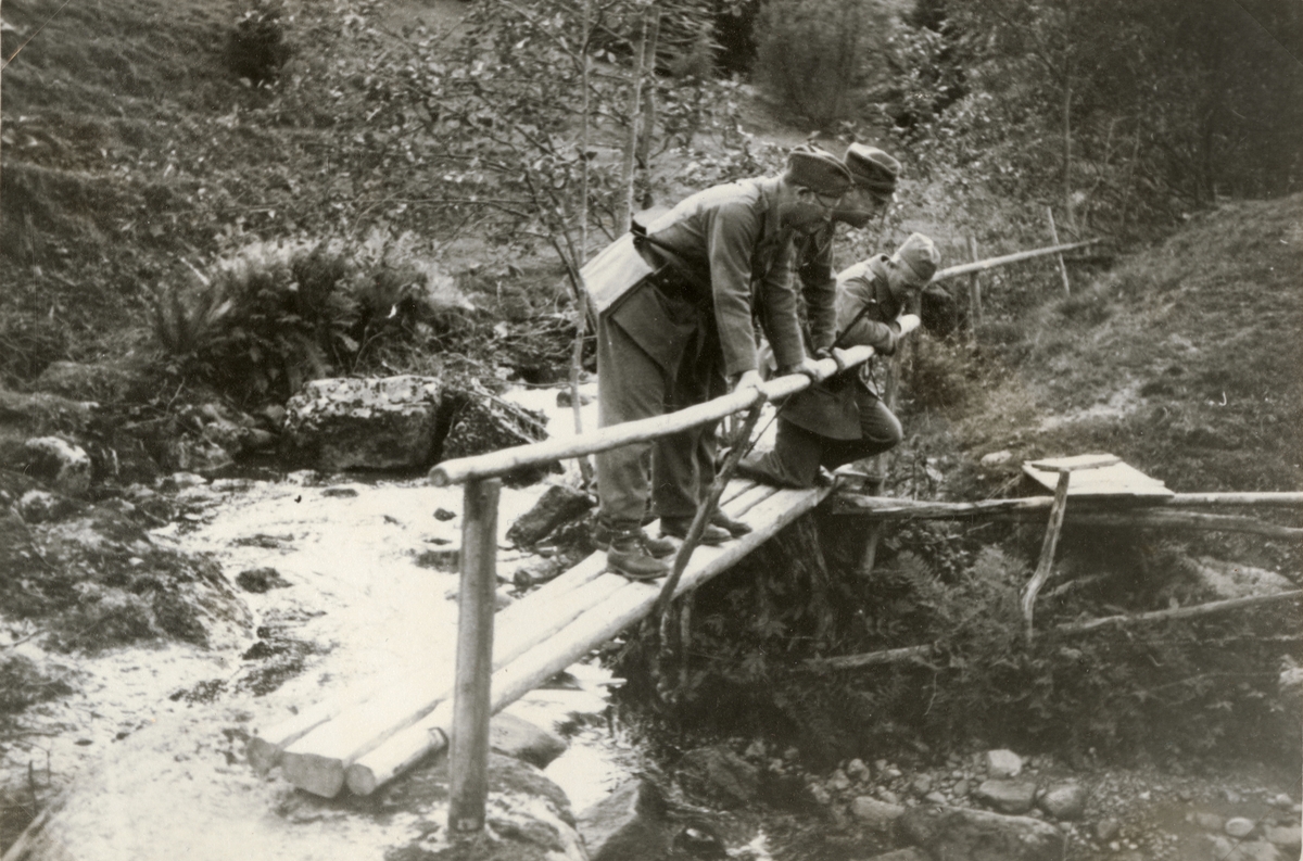 Titel: Soldater vid vattendrag.
