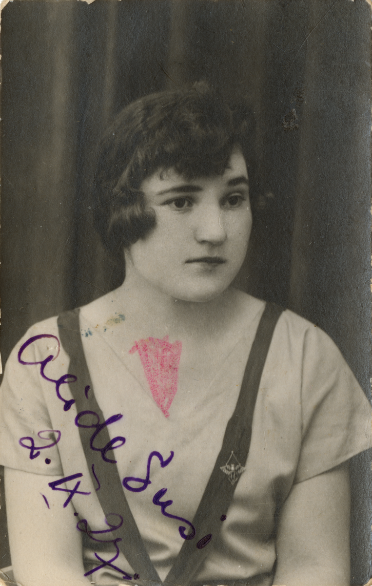 Titel: Porträtt av okänd kvinna. Bildtext: "Alide Susi".