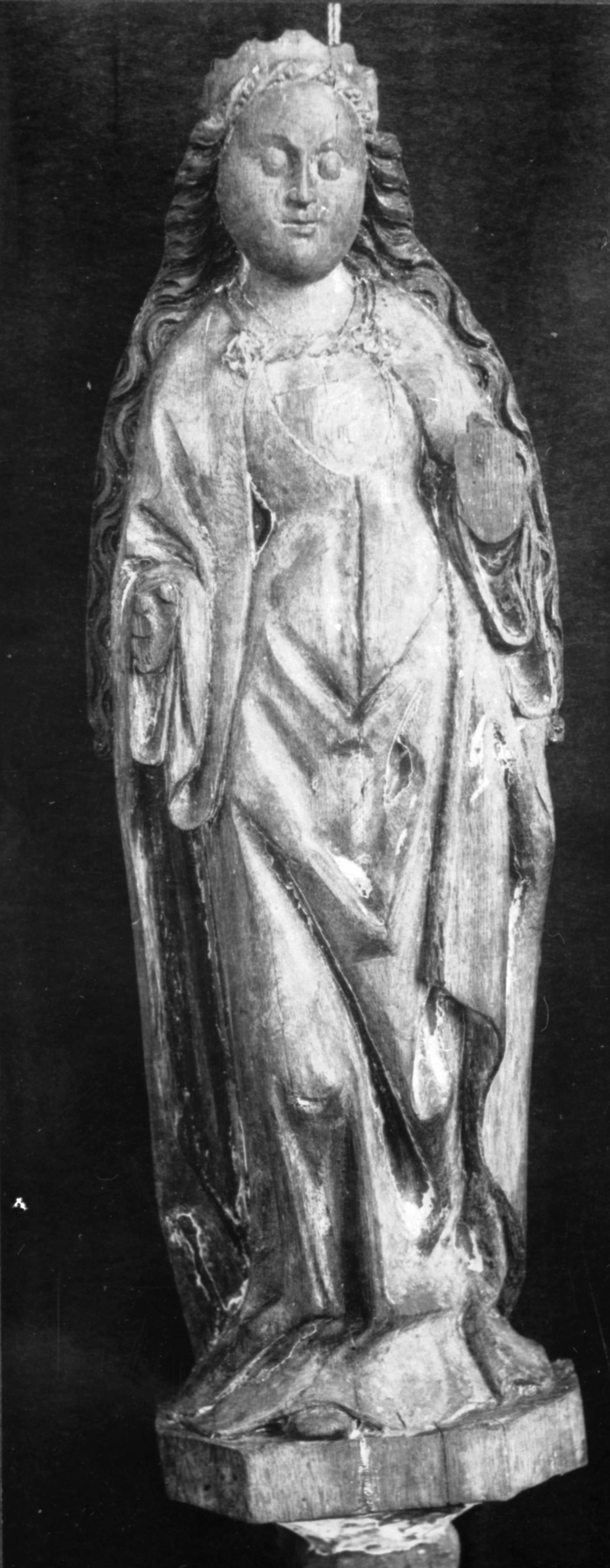 Skulptur av ek, kvinnligt helgon. 1500-tal.