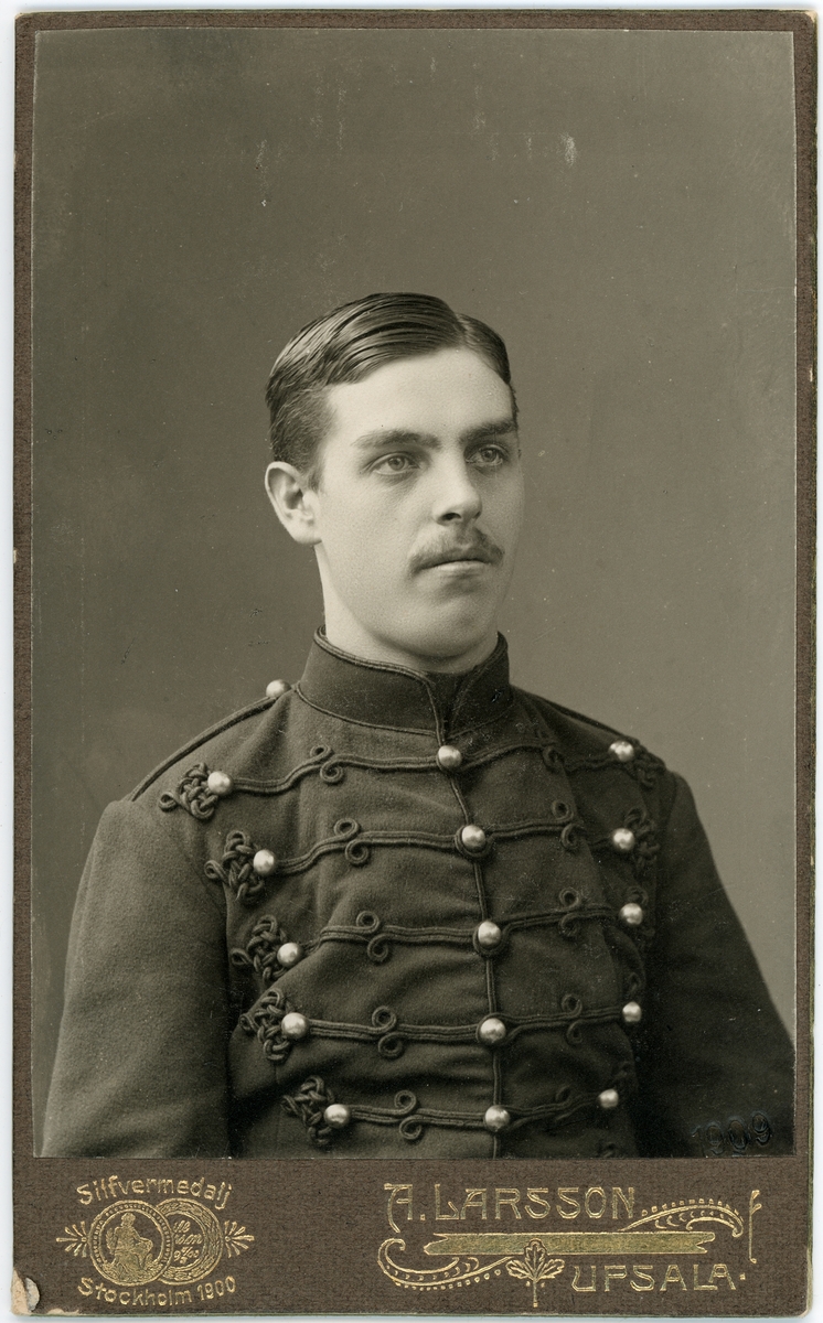 Kabinettsfotografi - man i uniform med blanka knappar, Uppsala 1909