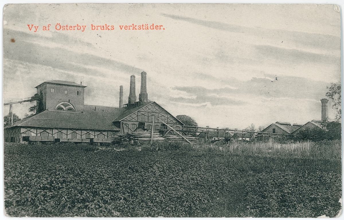 Brevkort - vy af Österby bruks verkstäder, Uppland