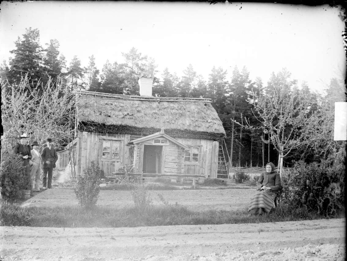 Augusta Lundin framför torpet Lillsvia i Björklinge socken, Uppland