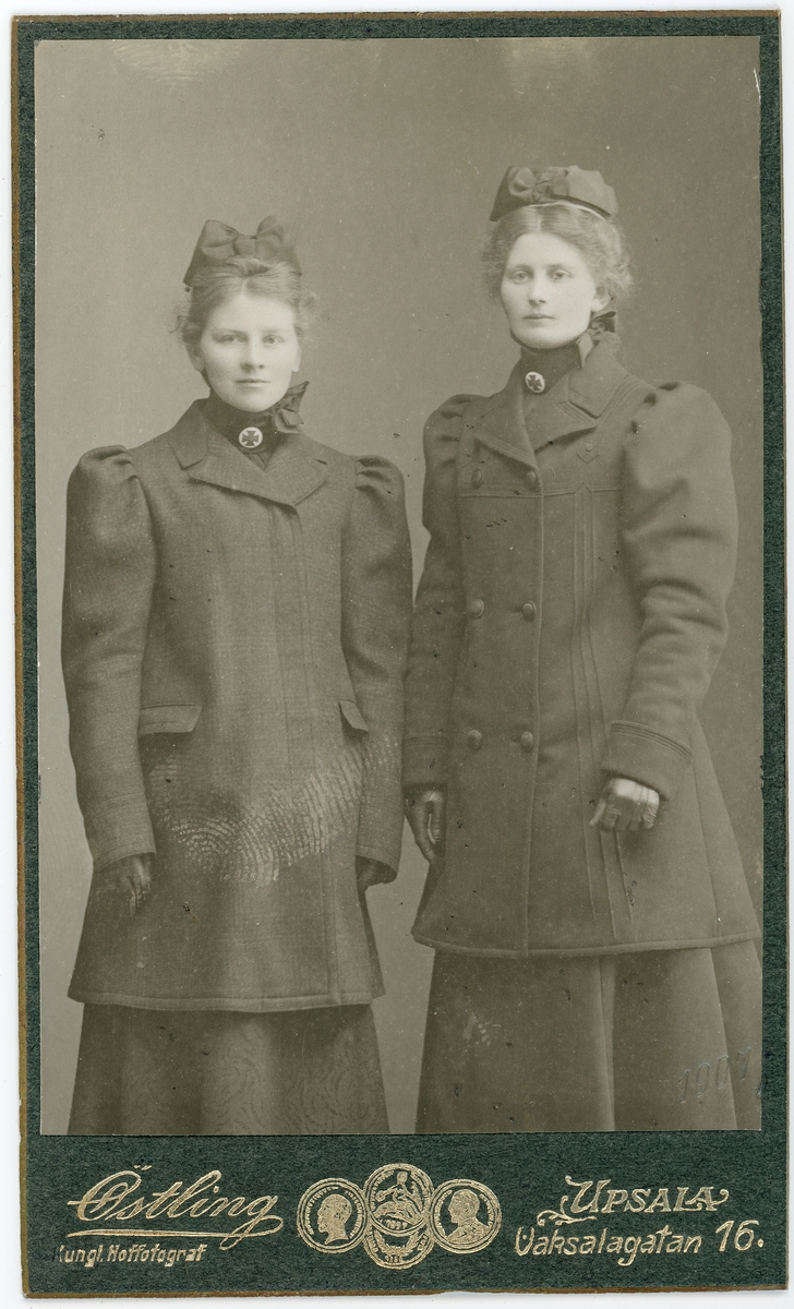 Kabinettsfotografi - två kvinnor i ytterkläder