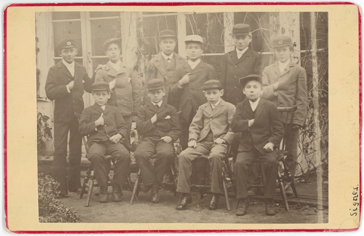 Titel: Kabinettsfotografi - realskoleelever i Norrtälje cirka 1880