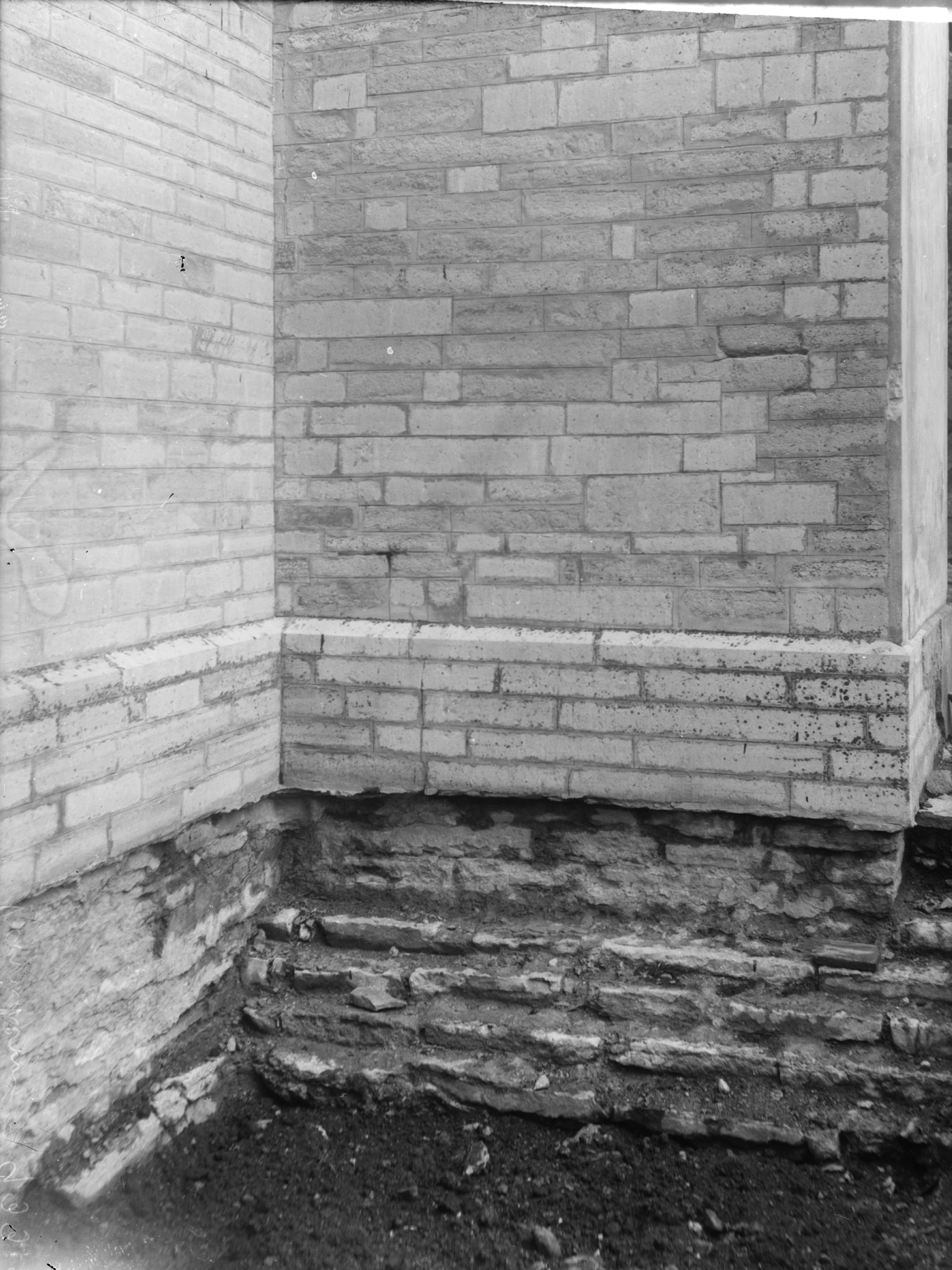 Södra tvärskeppets östra strävpelare från sydväst. Grund blottad.
