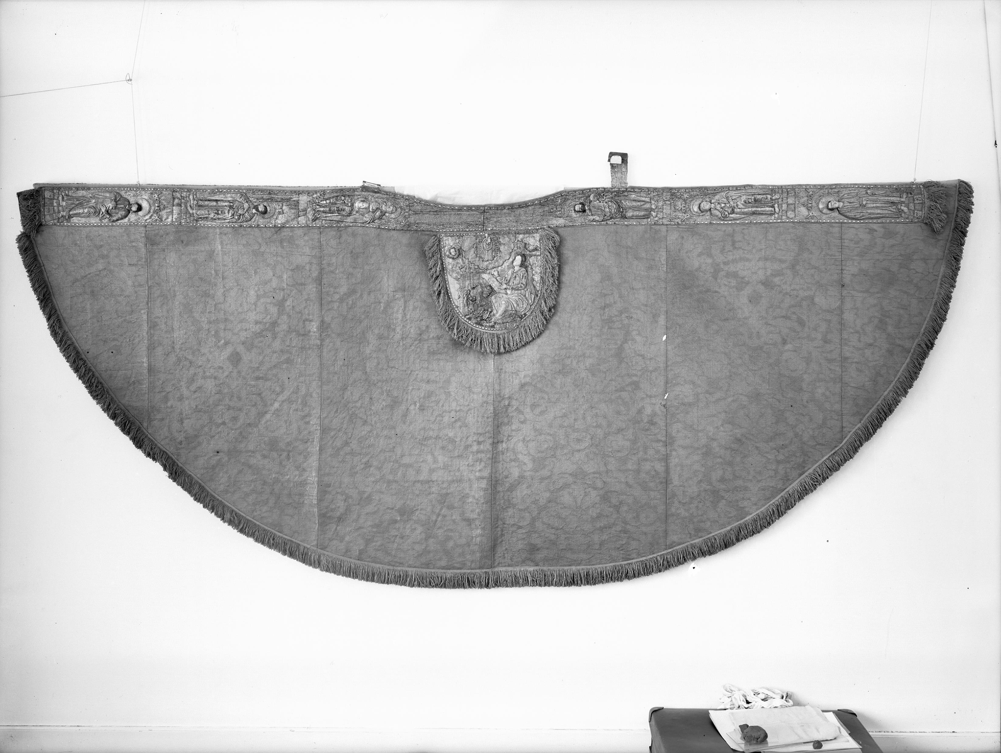 Korkåpa, guldbrokad, applicerade uppstoppade figurer i hög relief, 1576. (Sannolikt krigsbyte, polskt eller tyskt arbete.)