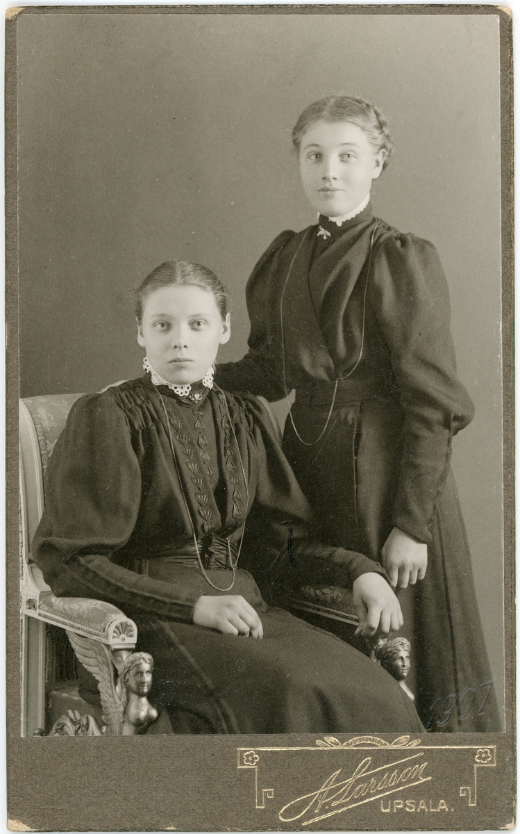 Kabinettsfotografi - två flickor, Uppsala 1907