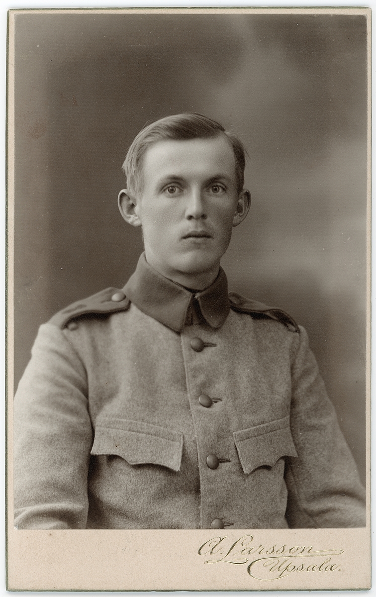 Kabinettsfotografi - ung man i uniform, Uppsala 1915