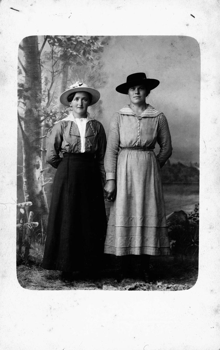 Ateljéporträtt - unga kvinnor, sannolikt i Östhammar, Uppland, före 1917