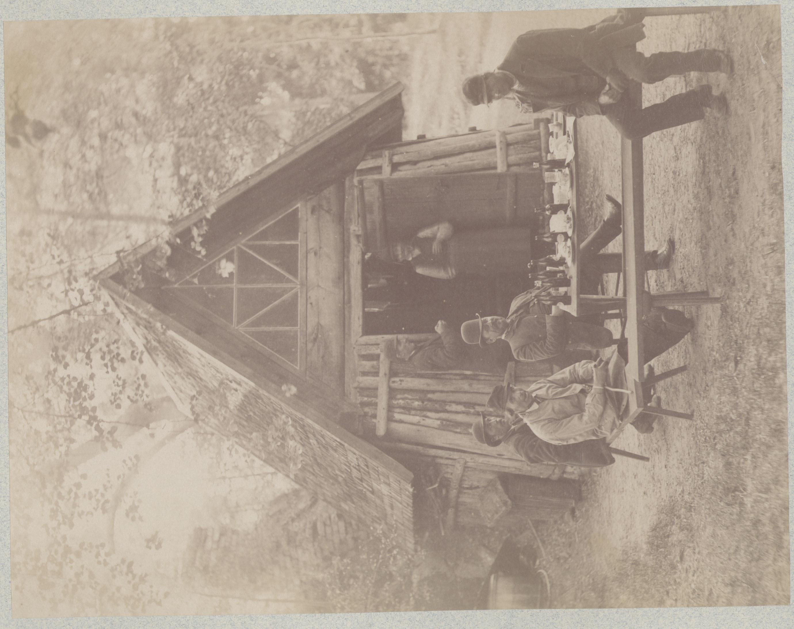 Människor vid eremithyddan från 1820-talet i Rydboholms slotts engelska park. Slottet har anor från 1400-talet.