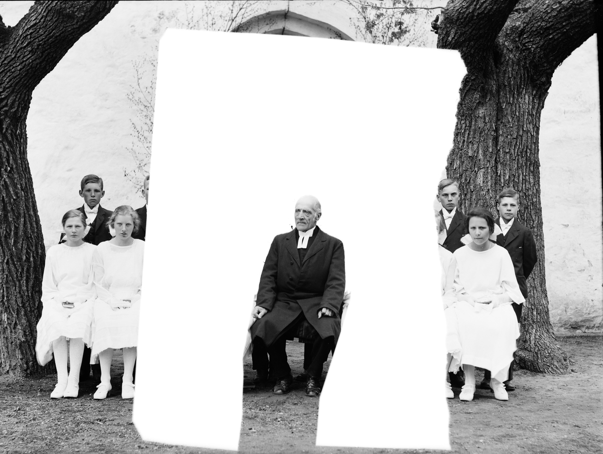 Kyrkoherde Sahlgren med konfirmander, Öregrunds kyrka, Uppland