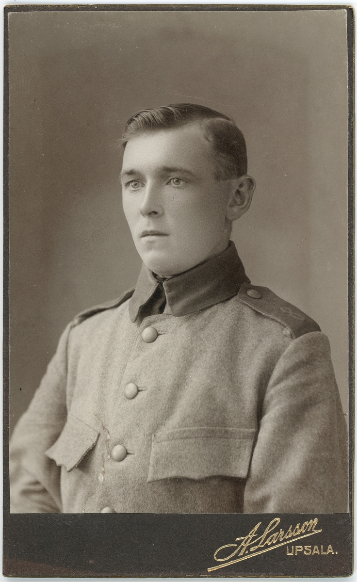 Titel: Kabinettsfotografi - ung man i uniform, Uppsala