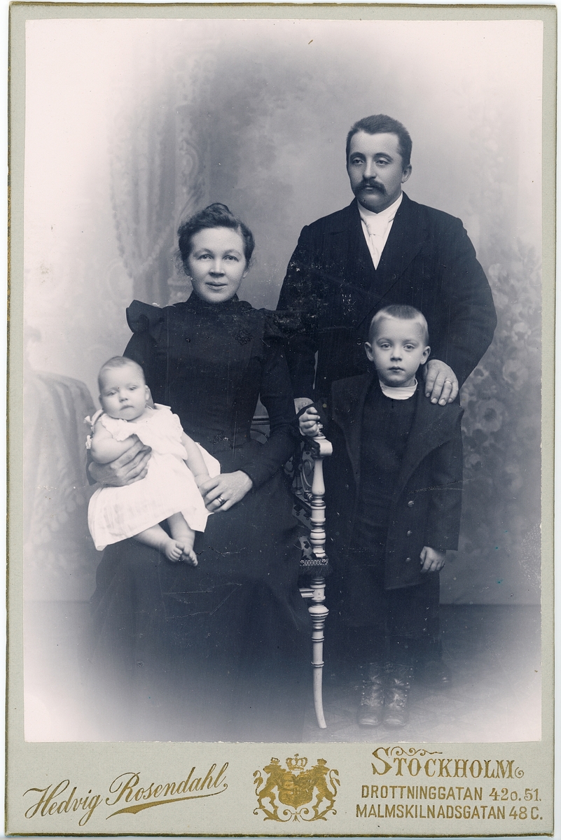 Kabinettsfotografi - Gustaf och Carina Nyman med barnen Gösta och Helge, Stockholm
