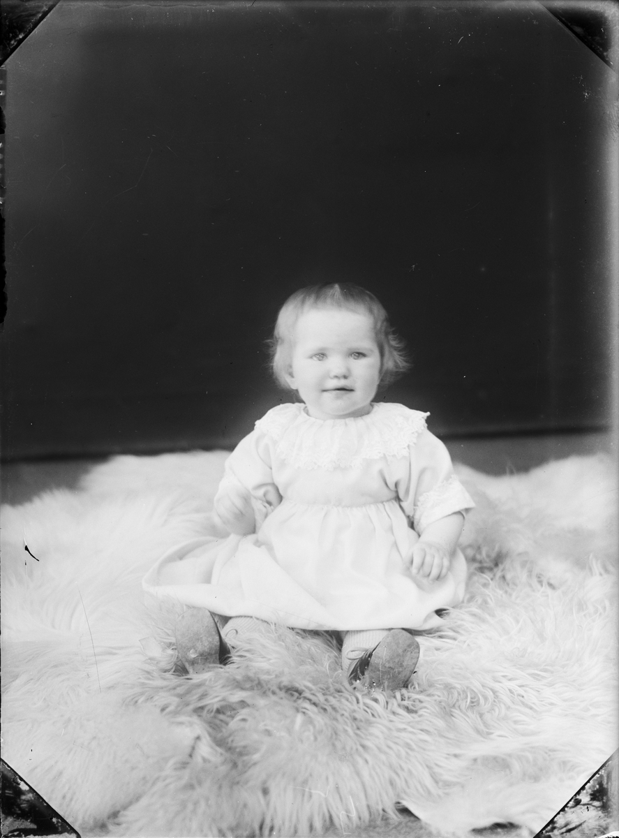 Ateljéporträtt - litet barn sitter på skinnfäll, Östhammar, Uppland