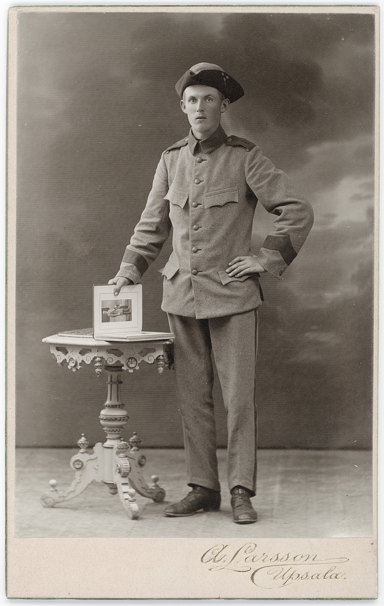 Kabinettsfotografi - ung man i uniform, Uppsala 1915