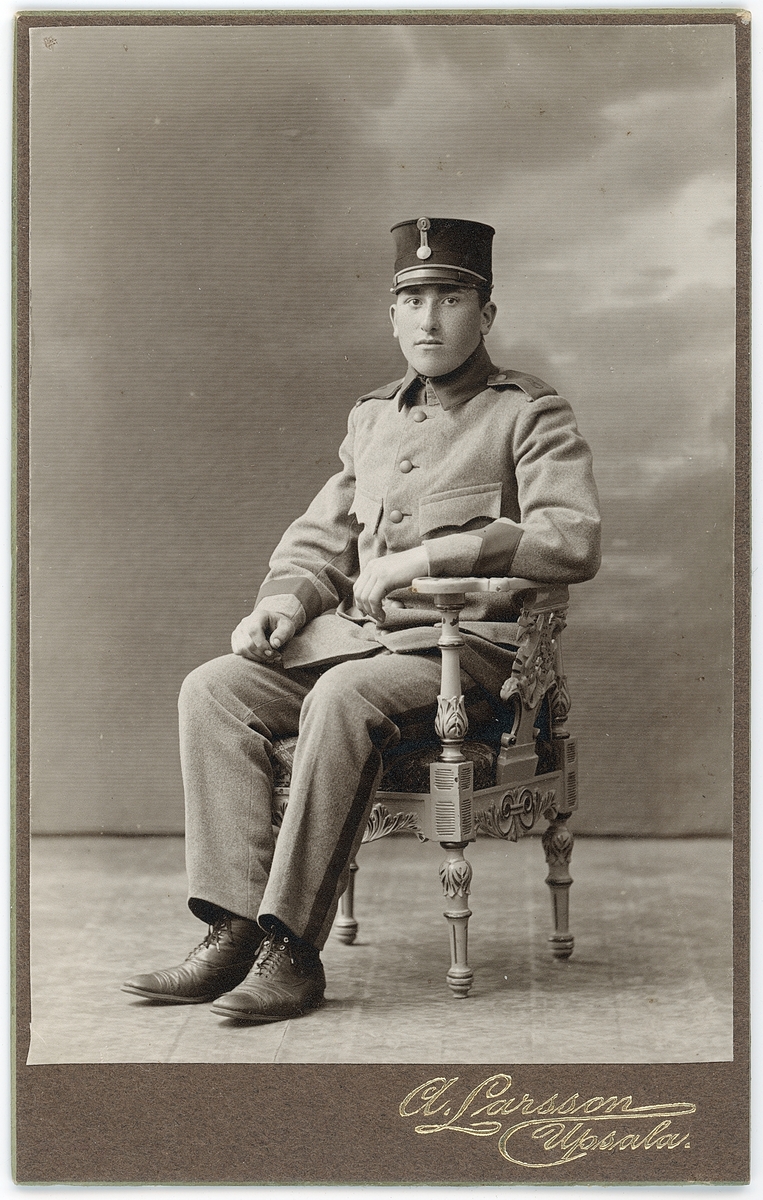Kabinettsfotografi - ung man i uniform, Uppsala 1915