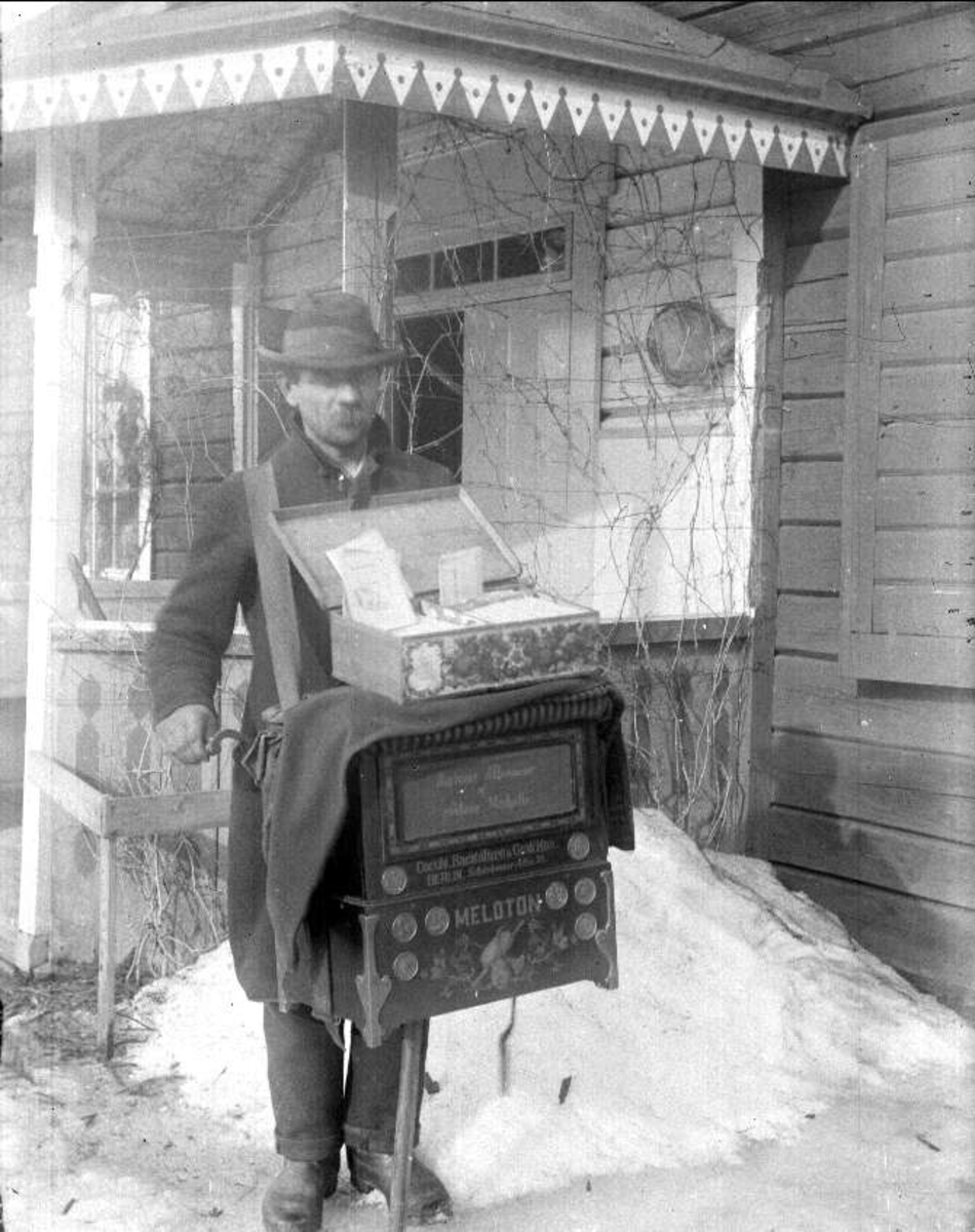 Positivhalare vid lanthandeln i Ärnebi, Funbo socken, Uppland