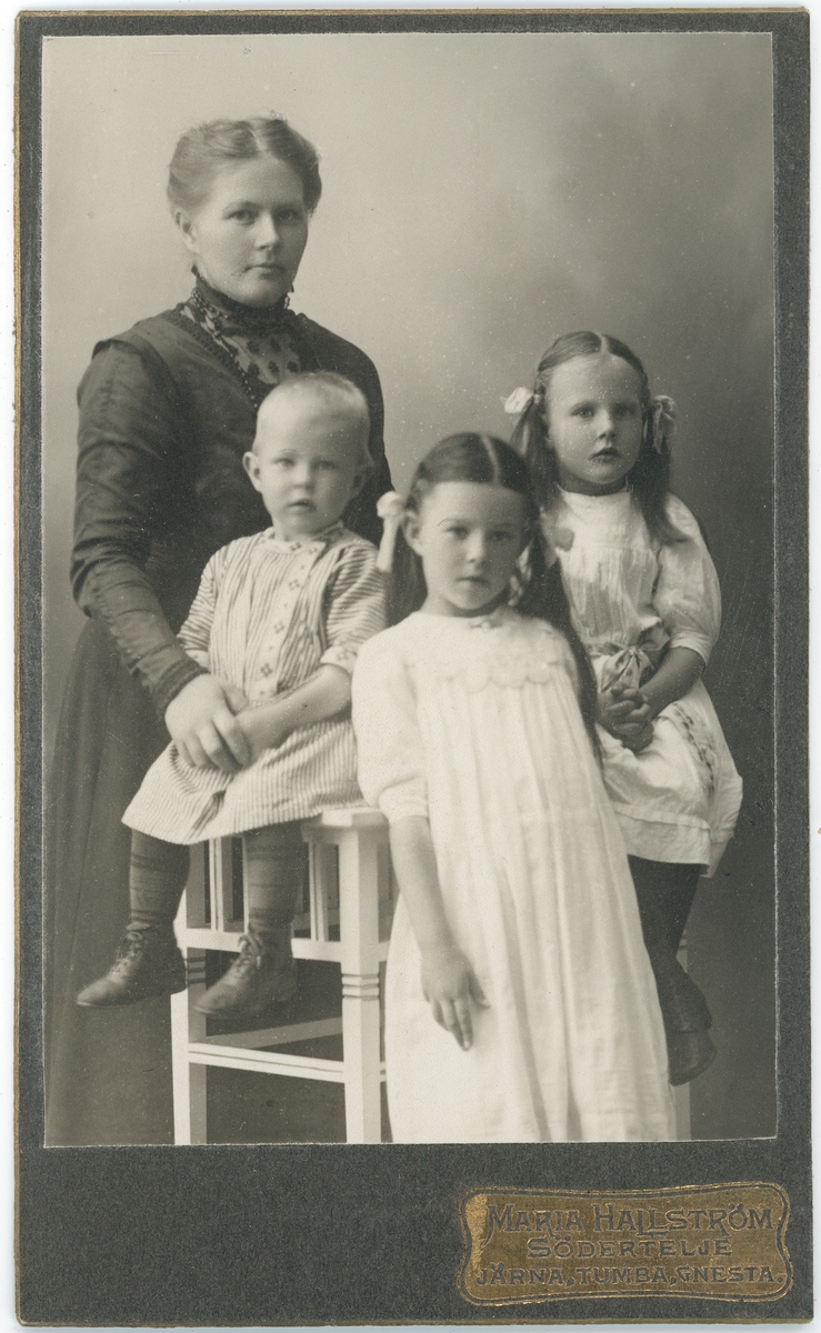 Kabinettsfotografi - kvinna och tre barn, Södertälje