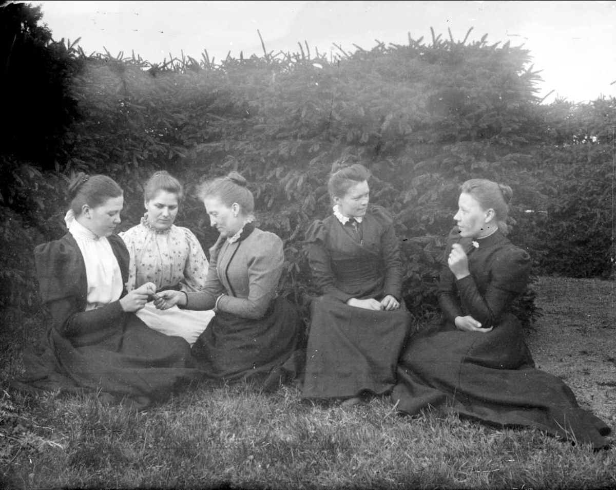 Unga kvinnor, i mitten sannolikt Anna Wester, Funbo socken, Uppland