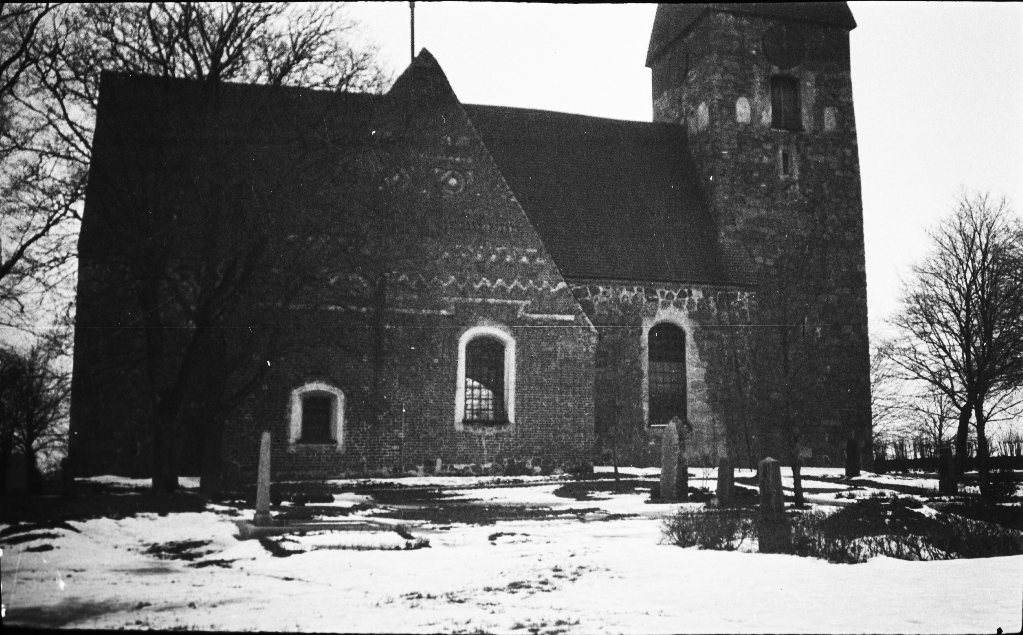 Kyrkan mot norr med sakristia och sidokapell.