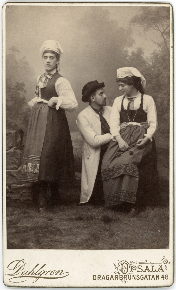 Kabinettsfotografi - Åstrand, Kant och Heideman i folkdräkt, Uppsala 1890