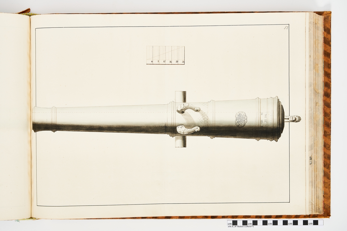 Avbildning föreställande eldrör återtaget som trofé av den svenska armén i slaget vid Narva den 20 november 1700. Ingår i volym med avbildade kanontroféer tagna åren 1700-1702.