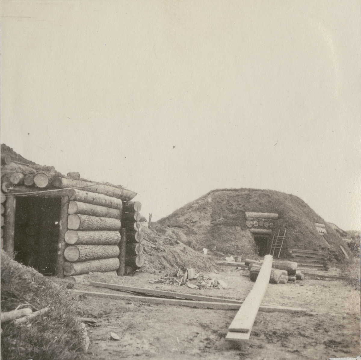 Titel: Text i fotoalbum: "Bombsäkert skyddsrum under byggnad".
