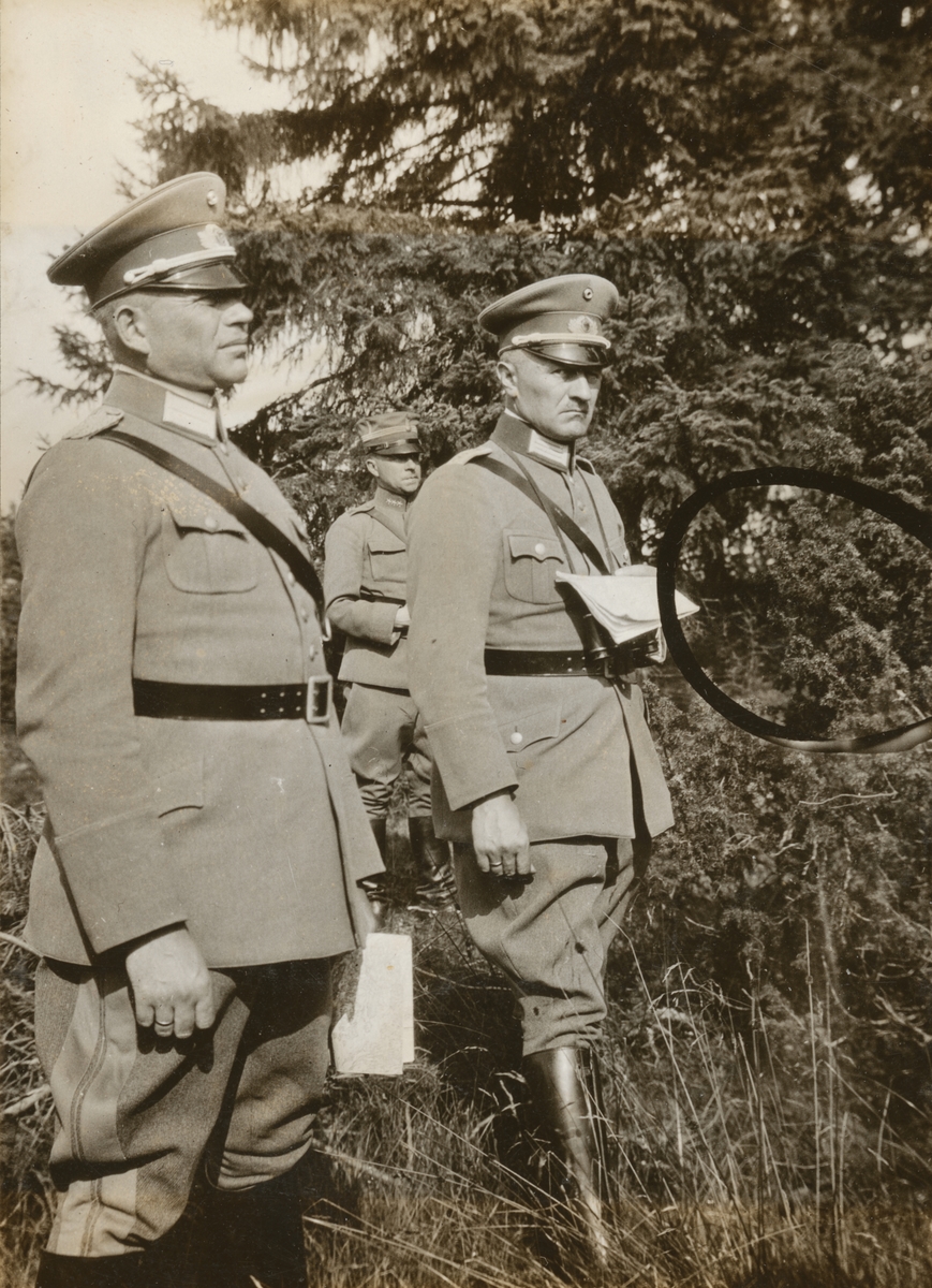 Tyska officerare på besök hos stridsvagnskursen vid Göta livgardes stridsvagnsbataljon. Major Guderian till vänster.