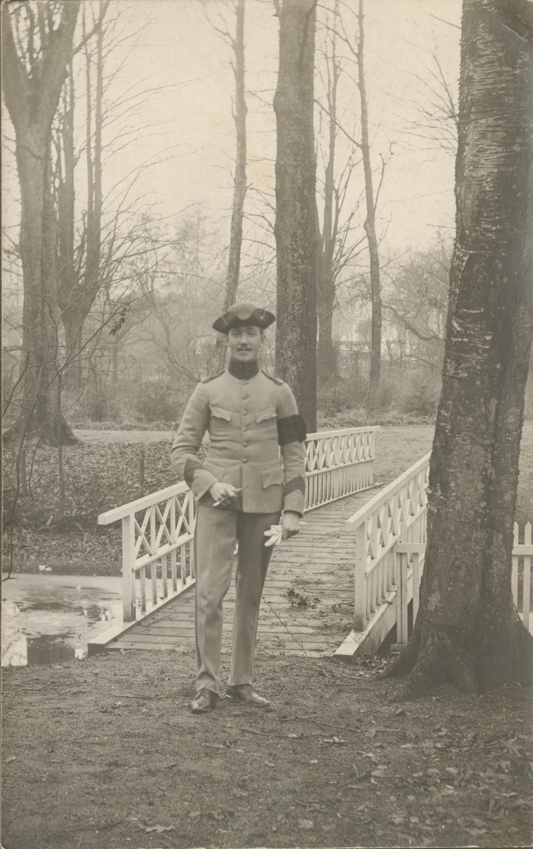 Titel: Soldat stående på en bro.