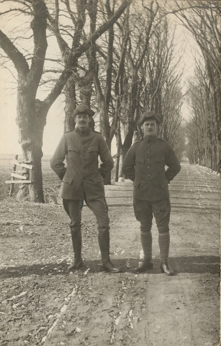 Titel: Två soldater vid en allé.