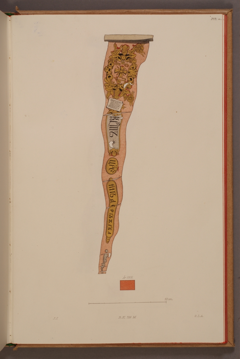 Avbildning i gouache föreställande fälttecken taget som trofé av svenska armén. Den avbildade vimpeln finns bevarad i Armémuseums samling, för mer information, se relaterade objekt.