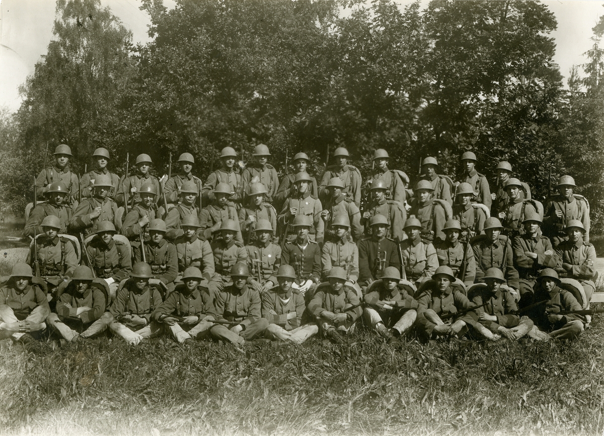Titel: Grupporträtt av landstormsmän i början av 1930-talet.
