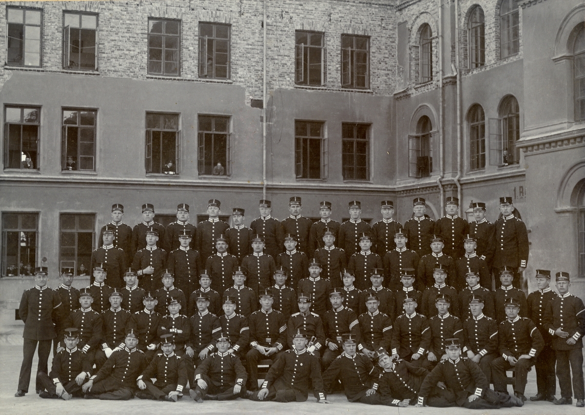 Grupporträtt av beväringsrekryterna vid Svea livgarde I 1, 1905.