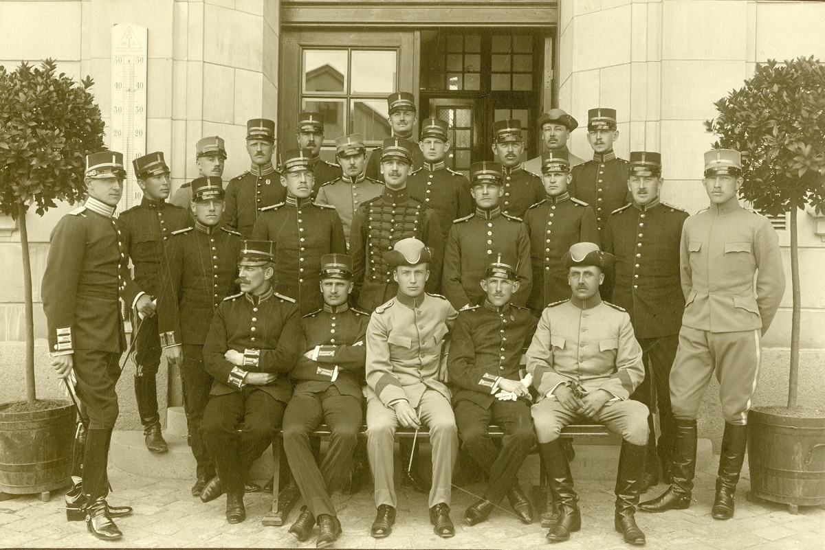 Titel: Grupporträtt av officerare på krigshögskolekurs år 1909-1911.