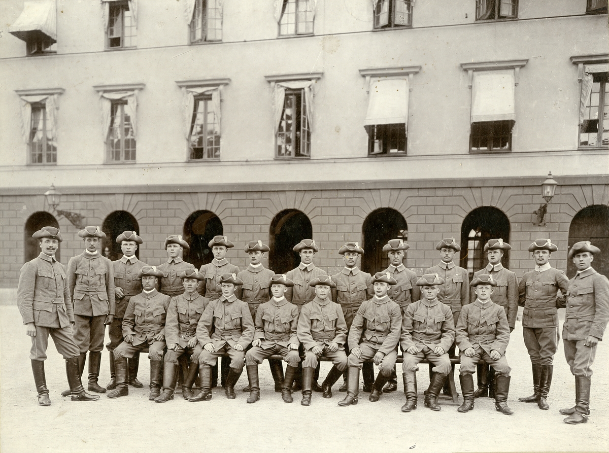 Grupporträtt av Positionsartilleriregementets 1. konstaplar.