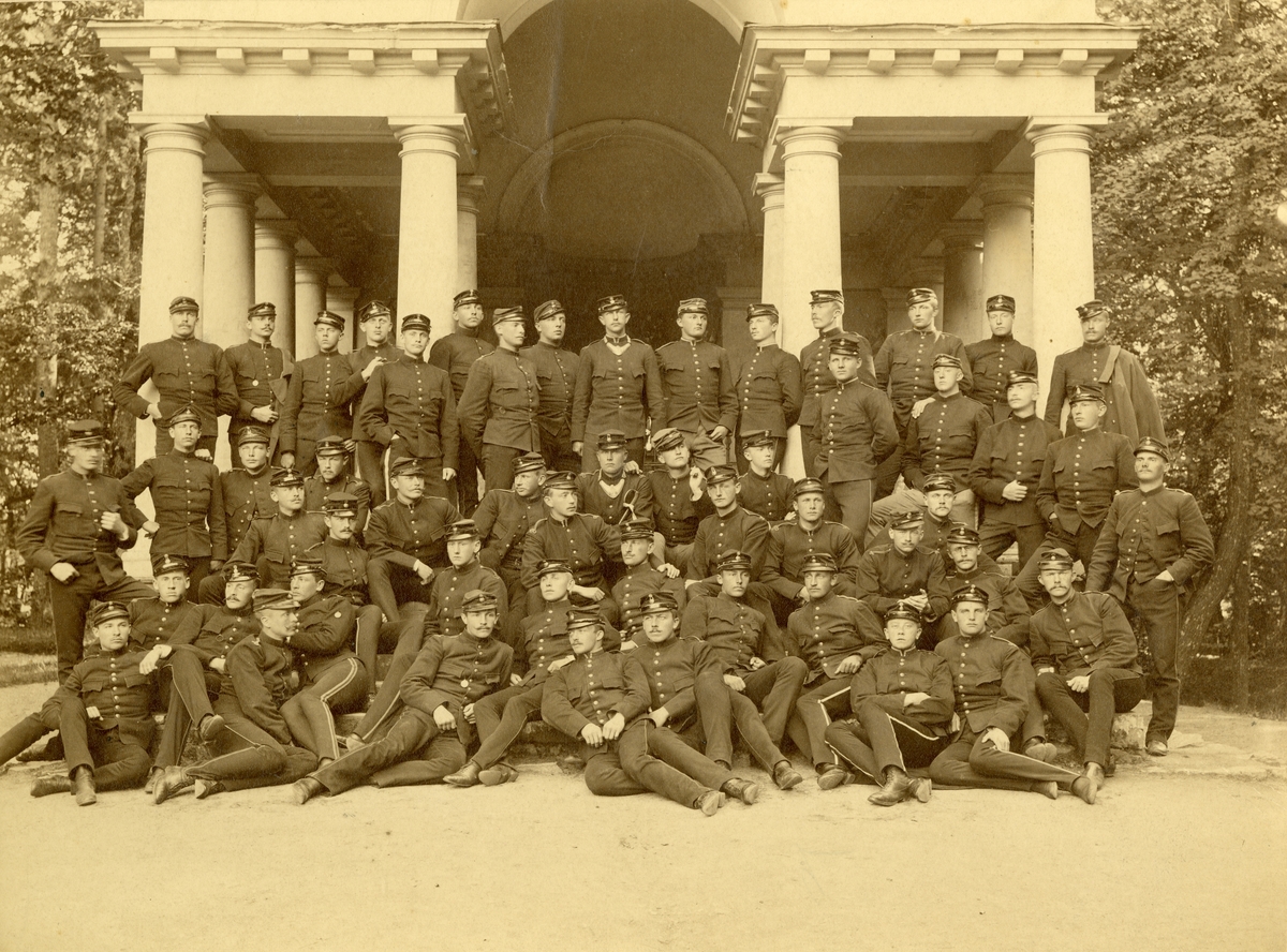 Titel: Grupporträtt av utexaminerade elever från krigsskolan 1888.