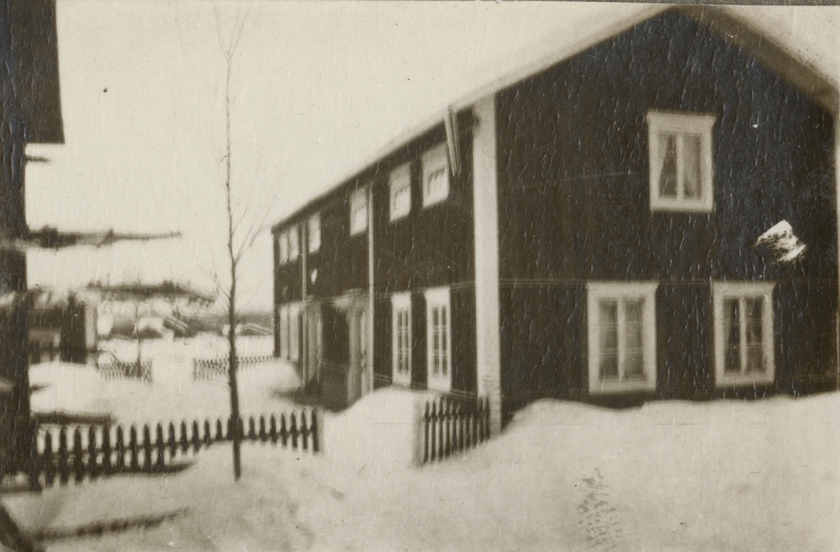Titel: Bildtext: "Från Gunnarvattnet (inkvarteringsbyggnaden)."